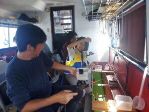 ・午前10時ぐらいまではいい感じで釣れていました。雨が降りはじめやや風が吹き始めてからは群れの入りはやや悪くなりました。明日も出船予定!
