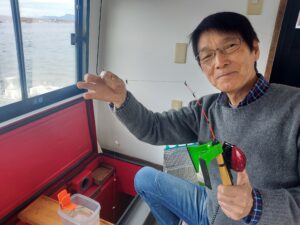 天候⇒曇り時々晴れ 風⇒南東 弱い 気温⇒-2~6 水温⇒11 数⇒120~130匹 ポイント⇒観光船桟橋沖 水深⇒11m 仕掛け⇒推奨0.5~1.5号 サイズ⇒4.5㎝~10㎝