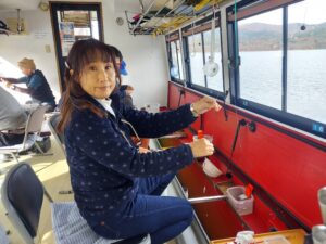 天候⇒晴れ 風⇒北西 弱い 気温⇒-1~13 水温⇒10 数⇒30~472匹 ポイント⇒観光船桟橋沖東 水深⇒11m 仕掛け⇒推奨0.5~1.5号 サイズ⇒4.5㎝~10cm