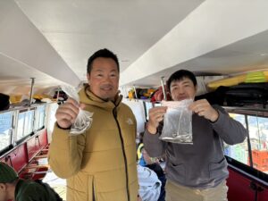 ・群れの入りがバラけていたため難しさはあったようですが、型も大小混じっていました。明日も出船します。