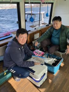 ・スタートから昼前まではよく釣れました。それ以降は魚探の反応が薄くなり渋ってしまいましたが、楽しめていただけたようです。