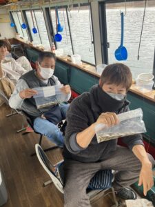 ・今日は開始時はポツポツと釣れていましたが、その後なかなか釣れない時間があり、その後また風向きが変わったあたりから再び釣れるようになりました!