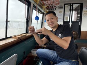 今日はターンオーバーと天気のせいか魚の反応が全体的に薄く、群れらしき群れも入りませんでしたが終始ポツリポツリと釣れ、3時間体験プランのお客さまもおおいに楽しめていました。