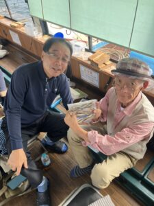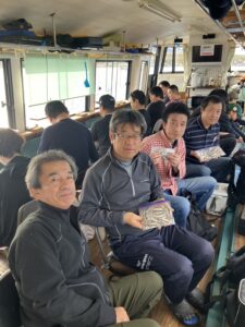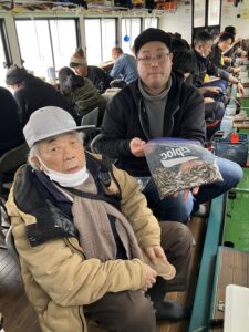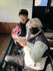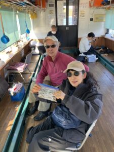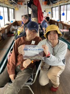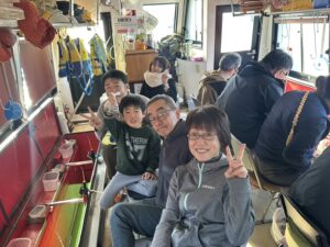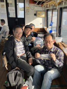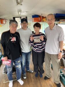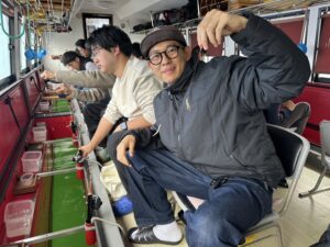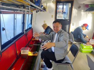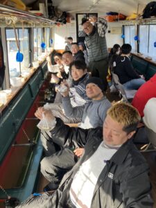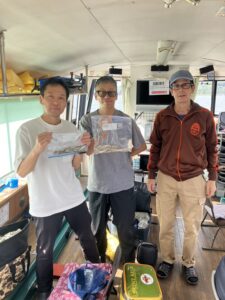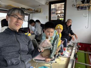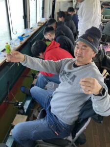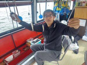 ・朝からポツポツと釣れ始めました。ほんとに小さな群れの回遊で底を中心で、誘っていればアタリがでるという面白い釣りになりました。初めてのお客様も50オーバーで多いに楽しめたようです。