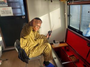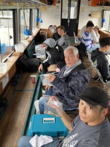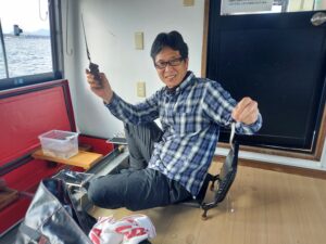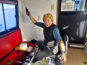 ・午前10時ぐらいまではいい感じで釣れていました。雨が降りはじめやや風が吹き始めてからは群れの入りはやや悪くなりました。明日も出船予定!