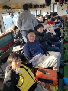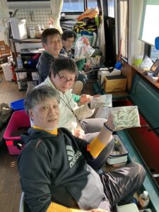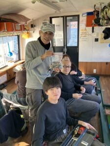 ・スタートから昼前まではよく釣れました。それ以降は魚探の反応が薄くなり渋ってしまいましたが、楽しめていただけたようです。
