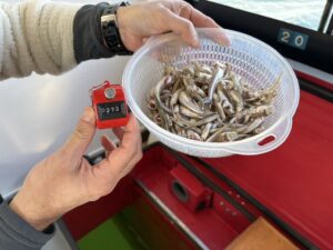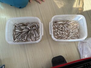 ・今日は10時以降は絶好調で頻繁に大きな群れが入り、あたりが続きました!トップは450匹!レンタル竿を使用したお客様の中には釣果が200匹超えた方もいました😲