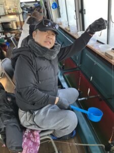 天候⇒曇り時々晴れ 風⇒南東 弱い 気温⇒-2~6 水温⇒11 数⇒120~130匹 ポイント⇒観光船桟橋沖 水深⇒11m 仕掛け⇒推奨0.5~1.5号 サイズ⇒4.5㎝~10㎝